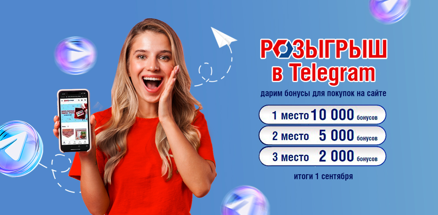 ДомоСтрой объявляет розыгрыш бонусов в Телеграм. Выигрывайте бонусы на выгодные покупки на сайте (1 бонус = 1 рубль):